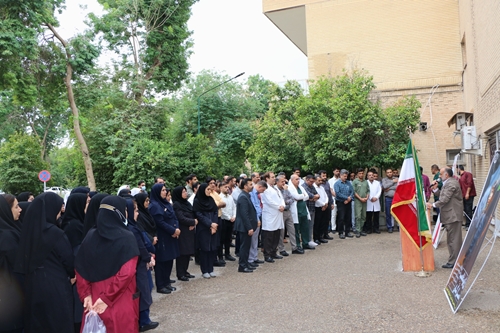 در این مراسم پرسنل بیمارستان در محکومیت رژیم صهیونیستی در اقدام حمله به بیمارستان المعمدانی غزه که منجر به شهید و مجروح شدن تعداد زیادی از افراد غیر نظامی و زنان و کودکان مظلوم شده وهمچنین به شهادت رسیدن بیماران و کادر درمان بیمارستان را در پی داشته است،تجمع کردند که با قرائت بیانیه و سر دادن شعار بر علیه رژیم صهیونیستی وحمایت خود را از ملت مظلوم و قهرمان فلسطین اعلام کردند.