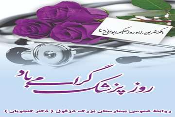 اینجانب ضمن پاسداشت و ادای احترام به پزشکان شهید عرصه سلامت ،این روز بزرگ را به تمامی طبیبان فرزانه جامعه پزشکی تلاشگر ایران اسلامی بویژه همکاران شاغل در بیمارستان بزرگ دزفول تبریک گفته و از خداوند منان توفیق روز افزون جهت ارایه خدمت بی منت به مردم شریف شهرستان دزفول را دارم و مردم همیشه قدردان نیز می دانند که بهترین شیوه قدردانی از پزشکان در شرایط کنونی رعایت کامل پروتکل های بهداشتی است تا سلامت جامعه تضمین و تلاش های پزشکان مثمر ثمر شود.