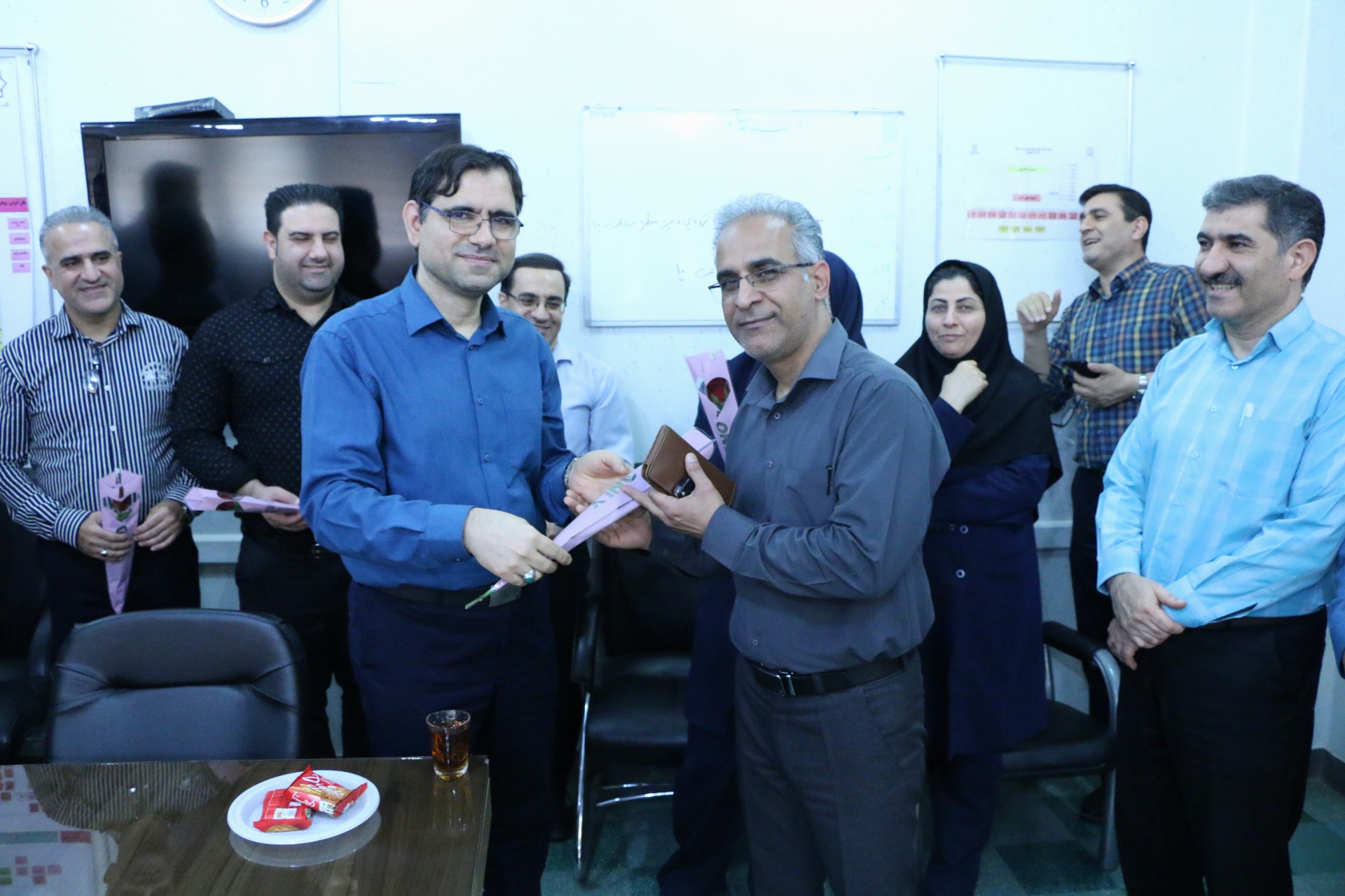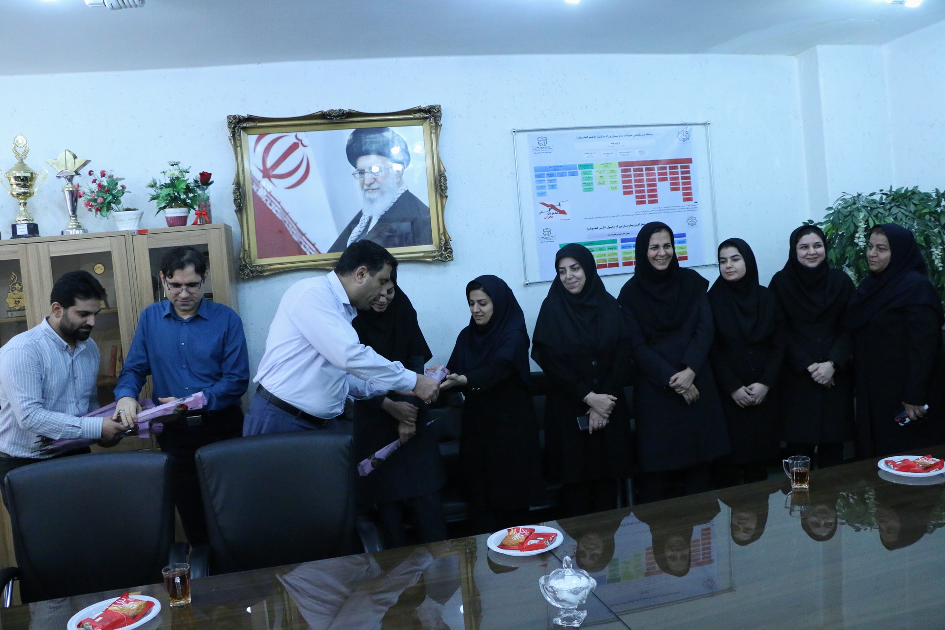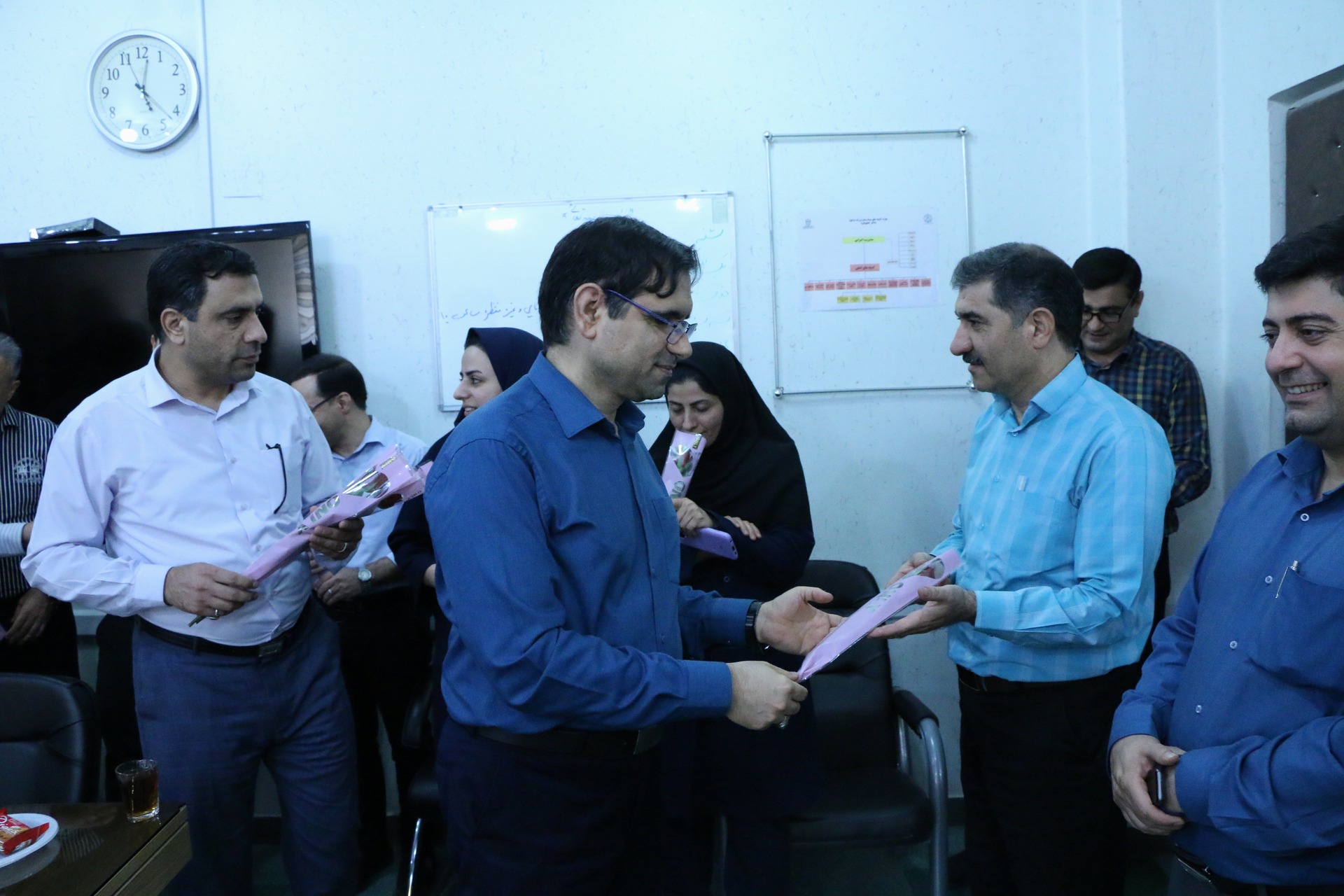 به گزارش روابط عمومی بیمارستان بزرگ دزفول(دکترگنجویان):نظر به فرا رسیدن چهارم شهریورماه در هفته دولت که  روزکارمند نام‌گذاری شده است دکتر شفیعی نیا رئیس بیمارستان طی آیینی در دفتر ریاست  ضمن تقدیر وتشکر از زحمات همکاران خود در واحد امور اداری بیمارستان به شرح گزارش تصویری ذیل با اهدای گل این روز را به همکاران خود تبریک گفت.