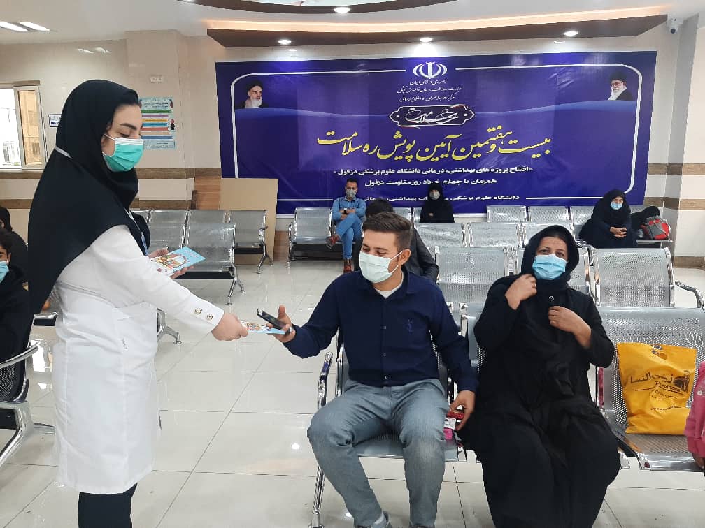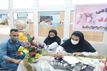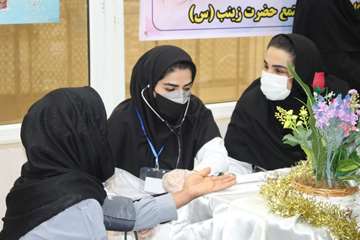 برگزاری ایستگاه سلامت در مجتمع زنان و زایمان حضرت زینب(س) و آموزش ،پایش فشار خون و پالس اکسی متر و توزیع پمفلت و کتابچه به مراجعین (خانم و آقا)