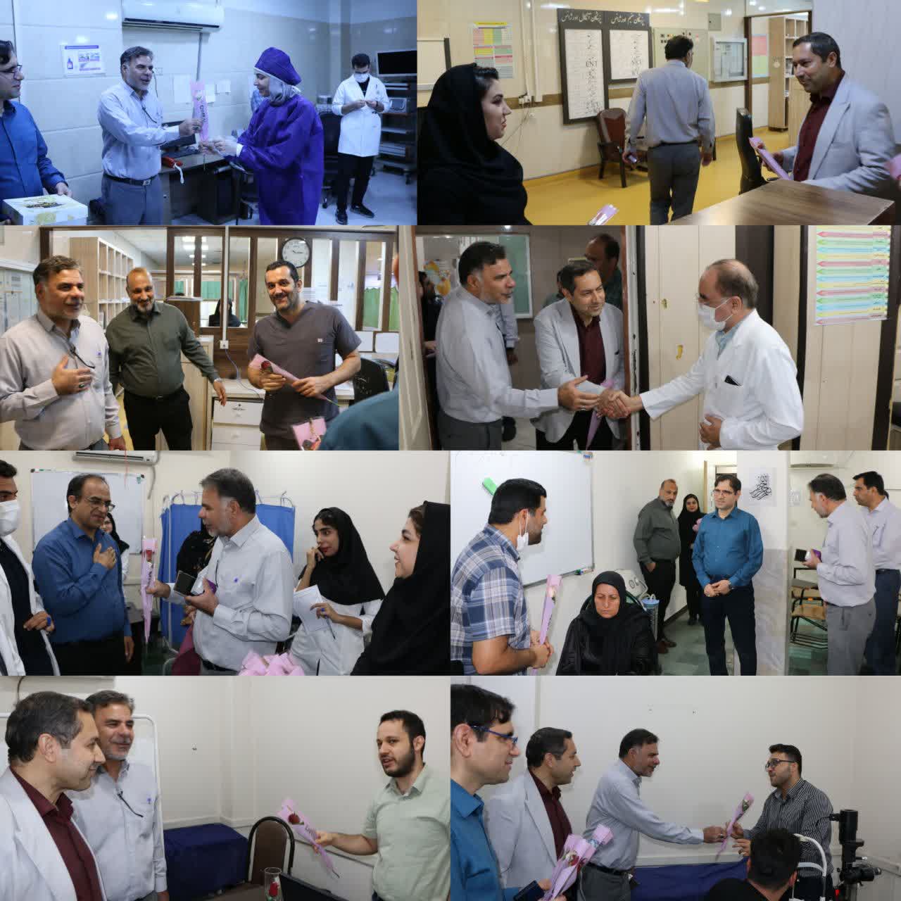 به گزارش روابط عمومی بیمارستان یزرگ دزفول دکتر علیرضا خسروپناه رئیس دانشگاعه علوم پزشکی دزفول به همراه دکتر ابیض معاون درمان و دکترشفیعی نیا رئیس بیمارستان بزرگ دزفول(دکترگنجویان)به مناسبت یکم شهریورماه که به مناسبت زادروز «بوعلی سینا» فیلسوف و پزشک بزرگ ایرانی به نام " روز پزشک "نامگذاری شده است باحضور در بخش های بیمارستان ضمن تقدیر وتشکر از زحمات همکاران خود به شرح گزارش تصویری ذیل با اهدای گل این روز را به همکاران خود تبریک گفت.
