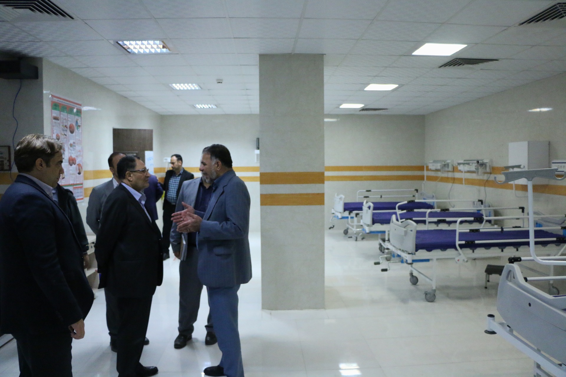 دراین بازدید  که ابتدا از بخش در حال احداث اعصاب و روان مردان شروع شد از بخش های بازسازی شده داخلی یک،اعصاب و روان زنان ، آشپزخانه بیمارستان همچنین راه اندازی دستگاه گاما اسپکت، مرکز سوانح سوختگی شامل "درمانگاه سوختگی ،بخش بستری،آی سی یو سوختگی و اتاق عمل و ریکاوری"و بخش بیماری های خاص و دستگاه سی تی اسکن 128 اسلایس در ادامه بازدیدشد.